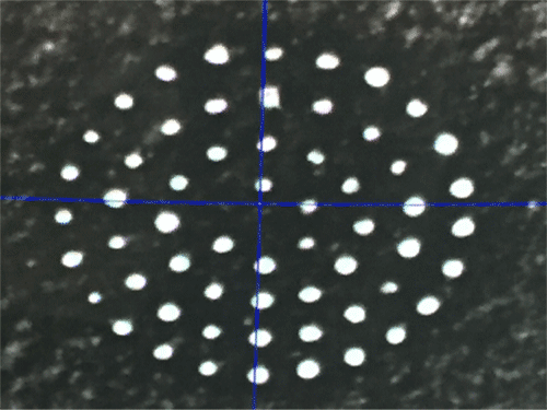 3. 將圖案放置打標(biāo)界面的中心點(diǎn)上,防止角度偏差產(chǎn)生孔徑大小均等,間距不